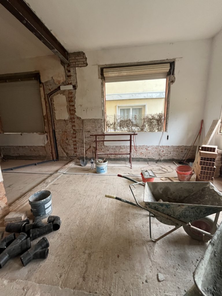 Ogni ristrutturazione inizia da qui. Le demolizioni comprendono la rimozione di pareti, pavimenti, rivestimenti, vecchi impianti e infissi. È la fase “zero”, in cui si fa pulizia per creare lo spazio che ospiterà la nuova distribuzione degli ambienti.
